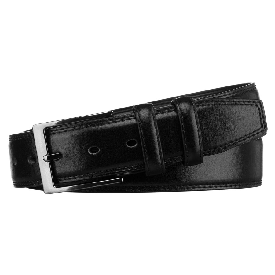 Czarny pasek męski ze skóry ekologicznej ze srebrną, klasyczną klamrą