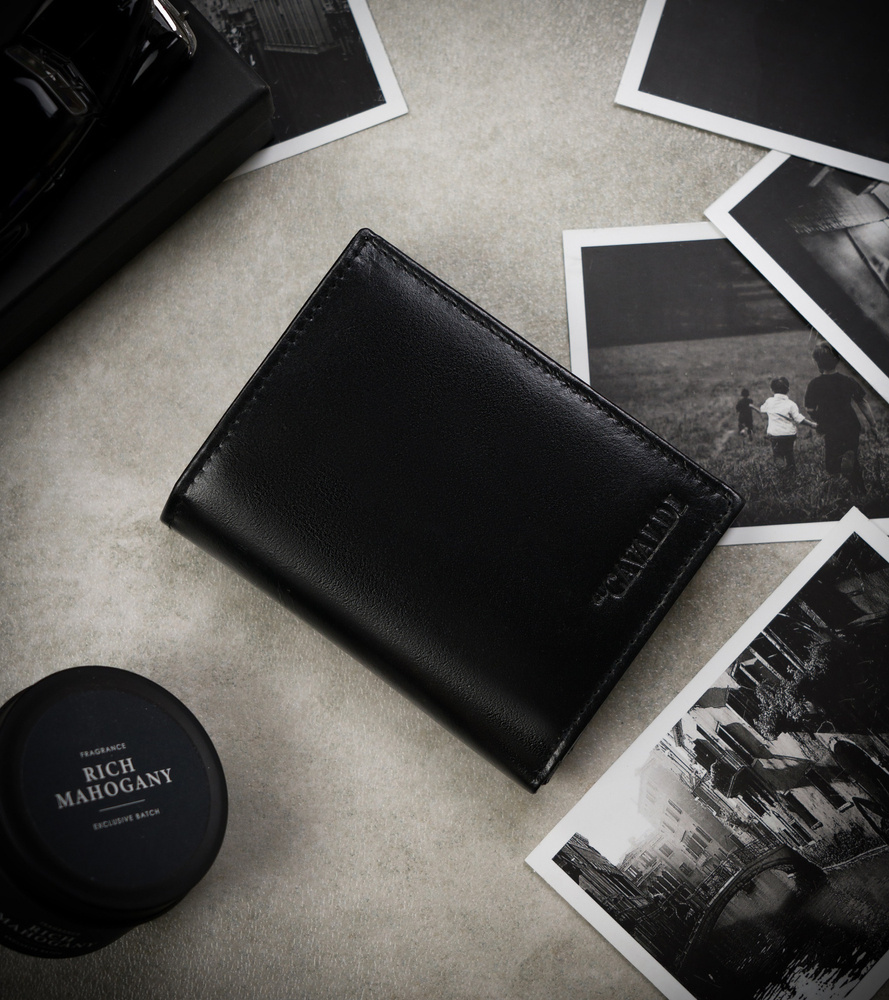 Czarny, skórzany portfel męski z zabezpieczeniem RFID Protect — Cavaldi