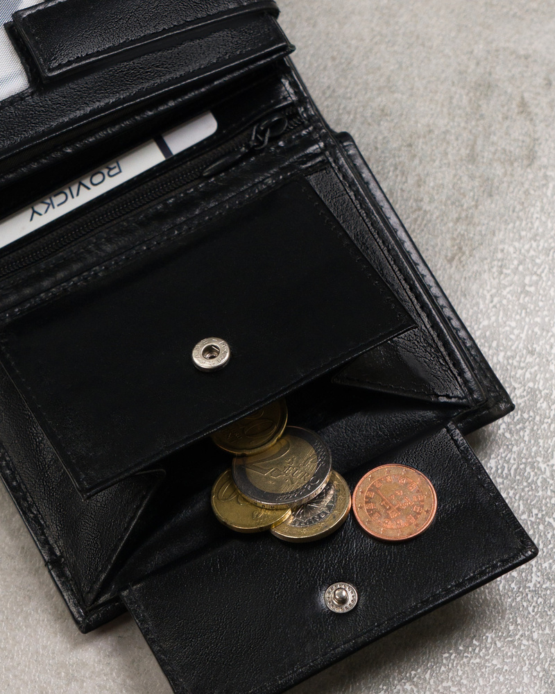 Podwójna kieszeń na banknoty jest przydatna dla Mężczyzny, który korzysta z dwóch walut.