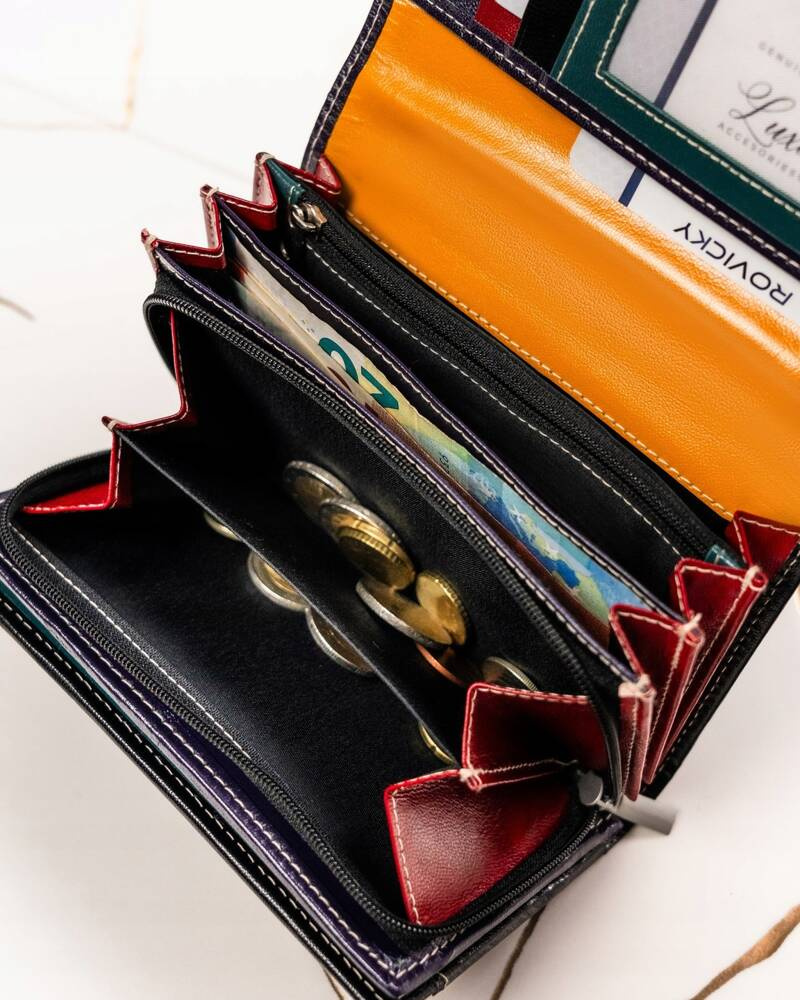 • 1 schowek w centralnej części portfela, zamykany na suwak.
