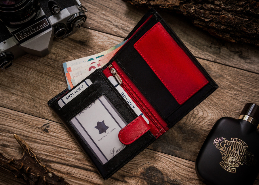 - Funkcjonalność i pojemny | Bez problemu mieści karty i dokumenty, które wszyscy posiadamy, jak dowód osobisty czy prawo jazdy, ale też dokumenty o większym formacie. Dowód rejestracyjny w okładce z wydziału komunikacji też znajdzie tu swoje miejsce, nie mówiąc już o gotówce – z łatwością zmieścisz tu wiele monet i banknotów;