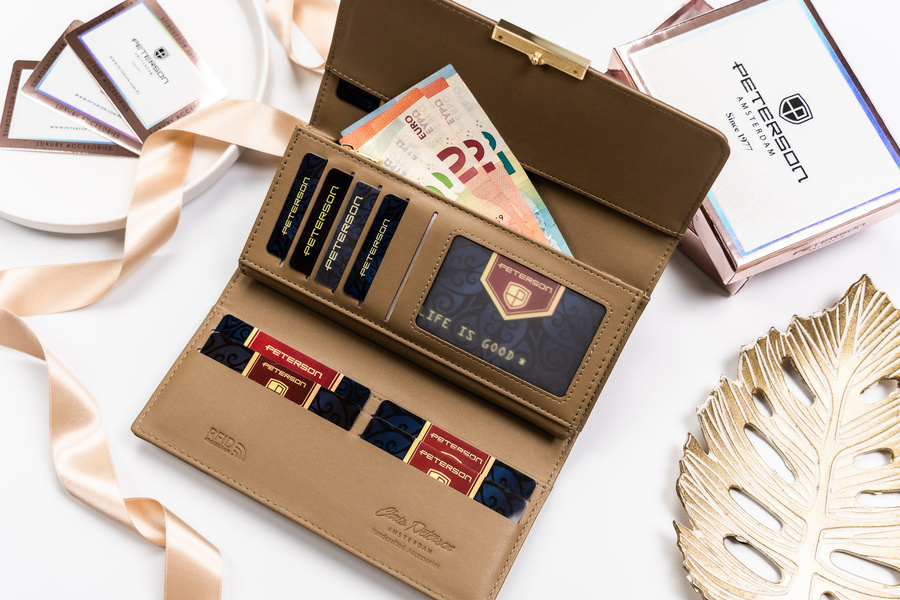 Duży, poziomy portfel damski ze skóry ekologicznej — Peterson