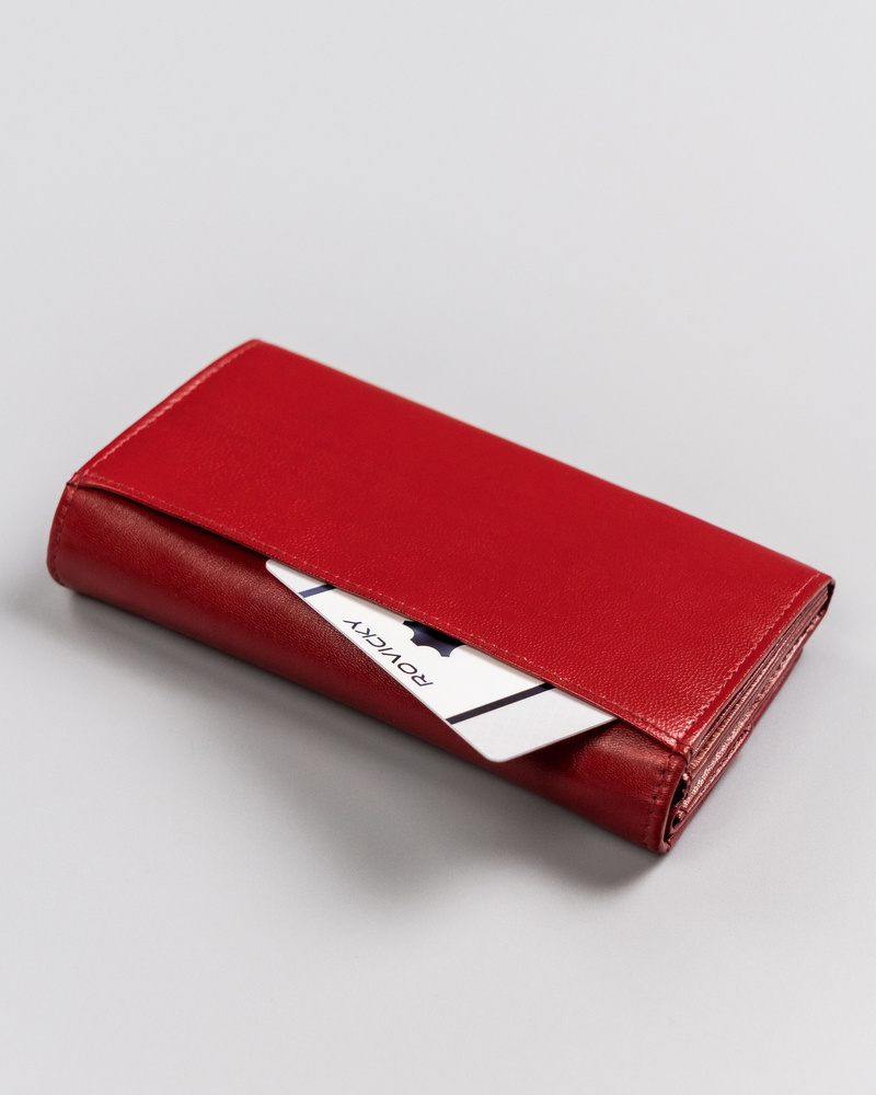 Uszyty z mocnej i trwałej skóry naturalnej bydlęcej, lekko połyskującej, lecz nie lakierowanej. Portfel, z którym będziesz czuć się modnie i komfortowo. Wyposażony w technologię RFID, która zabezpiecza kartę w portfelu przed kradzieżą środków z konta.