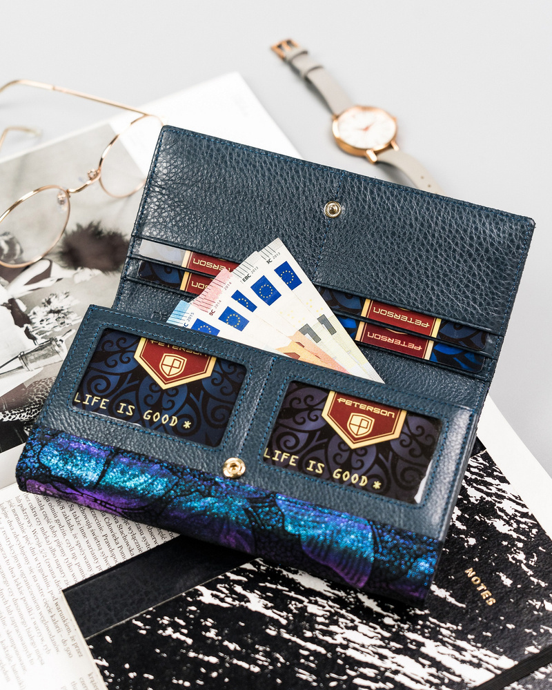 Duży, skórzany portfel damski na zatrzask — Peterson