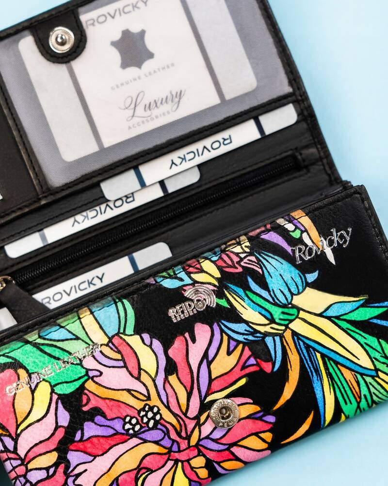 Duży, skórzany portfel damski na zatrzask – Rovicky