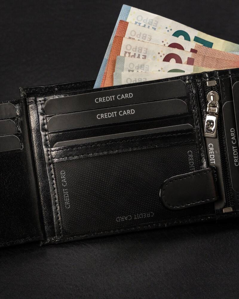 - na banknoty wydzielone zostały 2 szerokie, otwarte kieszonki. Taka ilość kieszeni pozwoli Ci na umieszczenie w portfelu pokaźnej ilości gotówki w wersji papierowej. Również taka ilość przegródek umożliwi Ci dodatkowo pogrupowanie pieniędzy na waluty, jeżeli korzystasz nie tylko z polskich złotych;