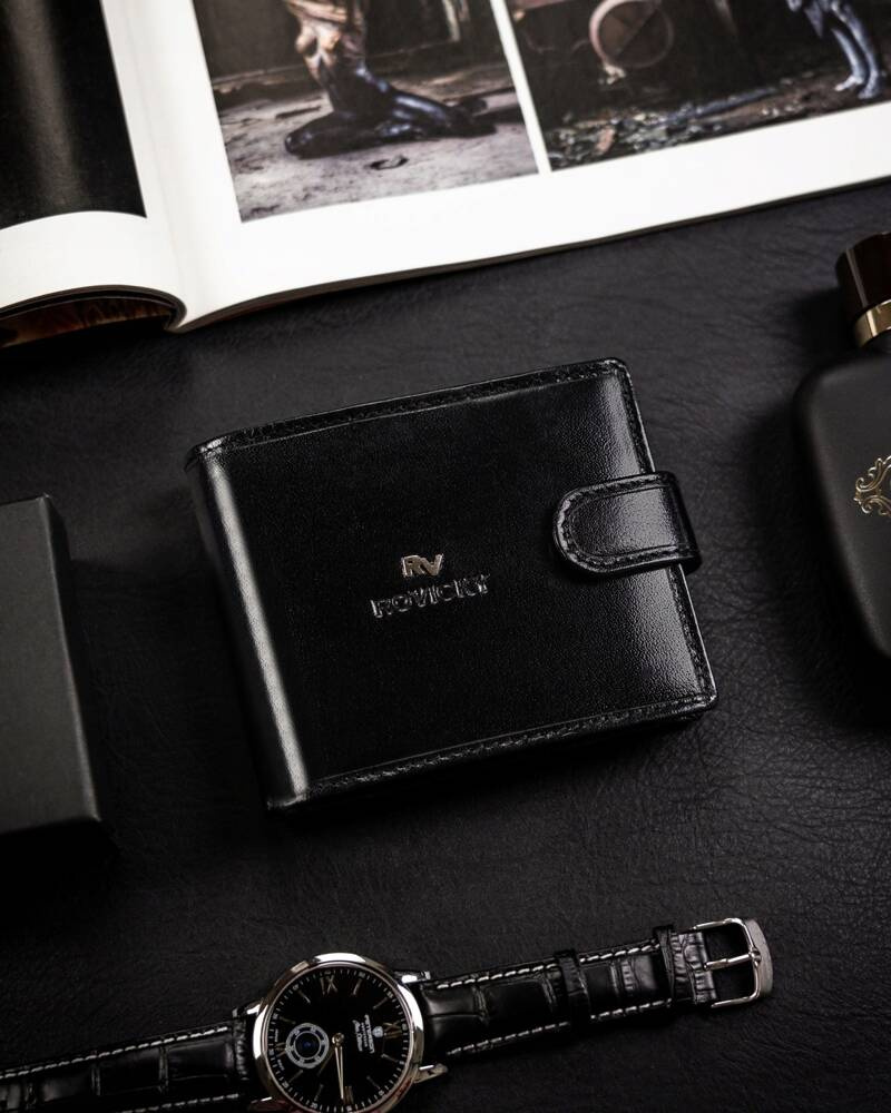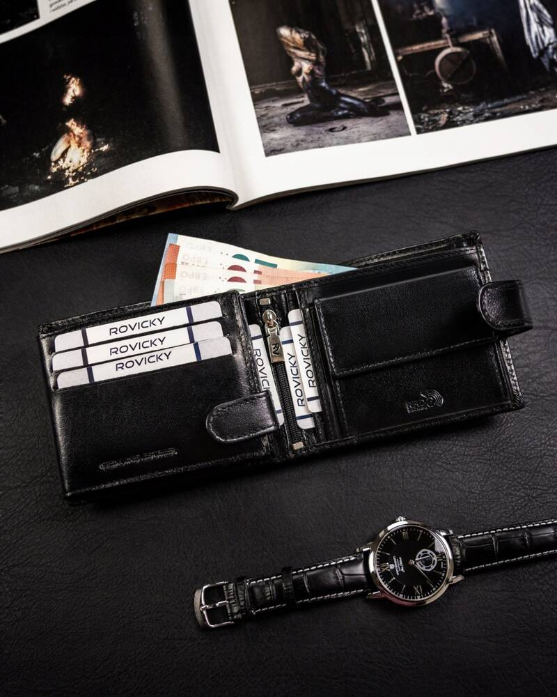 Duży, skórzany portfel męski na zatrzask – Rovicky