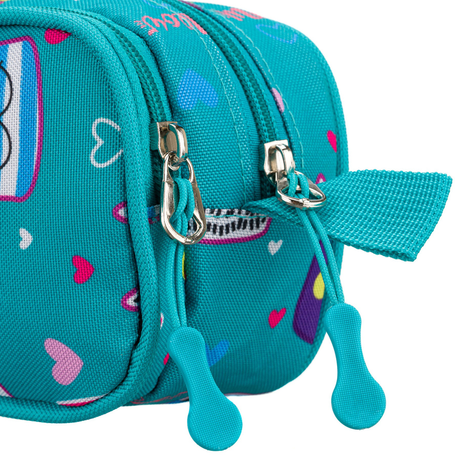 - Wygodne uchwyty suwaków – komfortowe w użyciu, nawet gdy piórnik jest wypchany po brzegi.