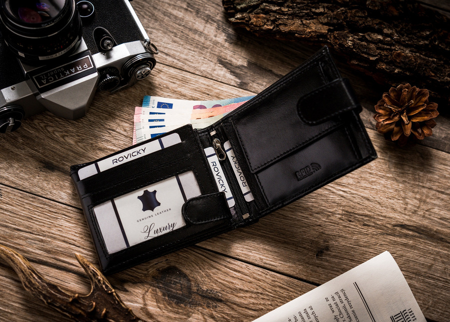 Elegancki portfel męski z systemem antyskimmingowym RFID Protect – Rovicky