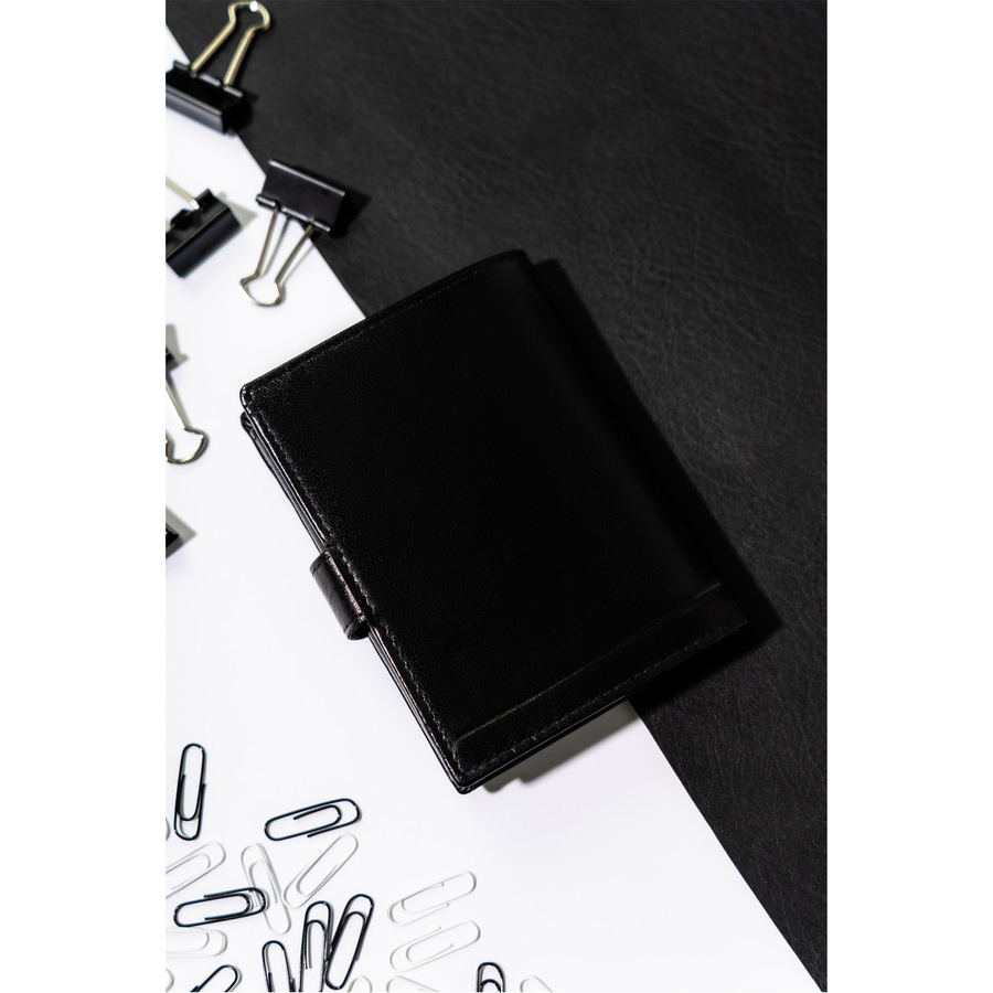 - Portfel odszyty ze skóry naturalnej w zawsze modnym czarnym kolorze.