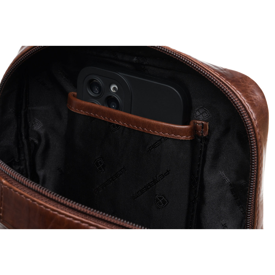 - Długi, regulowany pasek (do 150 cm) umożliwia wygodne dopasowanie do sylwetki – saszetkę można nosić zarówno na ramieniu, jak i na skos.