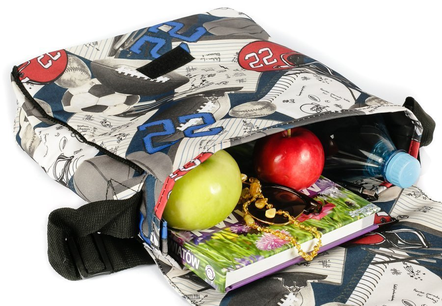 Prosta forma, bez problemu mieszcząca format A4, niesamowicie lekka i praktyczna. Jednokomorowa, wewnątrz czarna, odporna na zabrudzenia podszewka. W środku 2 kieszenie (jedna na suwak) oraz 2 miejsca na długopis. Torbę wyposażono w regulowany pasek. Zamykana klapką na rzep, oraz suwakiem. Piękna! 🙂