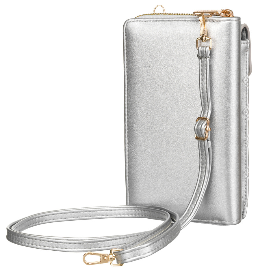 Srebrny torebko-portfel Cavaldi to elegancja w małej formie. Idealna na telefon i karty, z długim paskiem na ramię, łączy funkcjonalność i modny design. Świetny wybór na co dzień lub wieczorne wyjścia.
