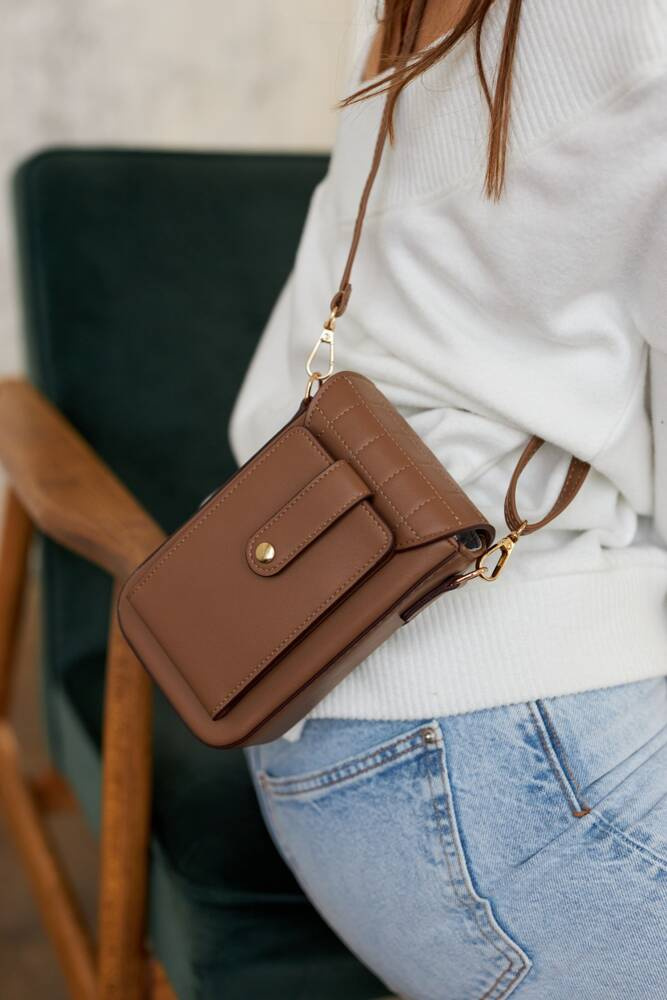 Mała torebka na długim, odpinanym pasku ze skóry ekologicznej. Na rewersie posiada kieszonkę zapinaną klapką na zatrzask magnetyczny. Wyposażona w 6 miejsc na karty.