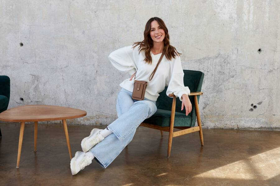Na rewersie torebki umieszczono niewielką kieszeń zamykaną na zatrzask. Wewnątrz niej znajduje się 6 miejsc na karty, których używasz najczęściej i chcesz mieć zawsze pod ręką. Główna komora, zamykana klapką na zatrzask, została wyściełana na jasnej podszewce. Pozwala to uniknąć otarć na eko skórze, podczas wkładania i wyjmowania przedmiotów.