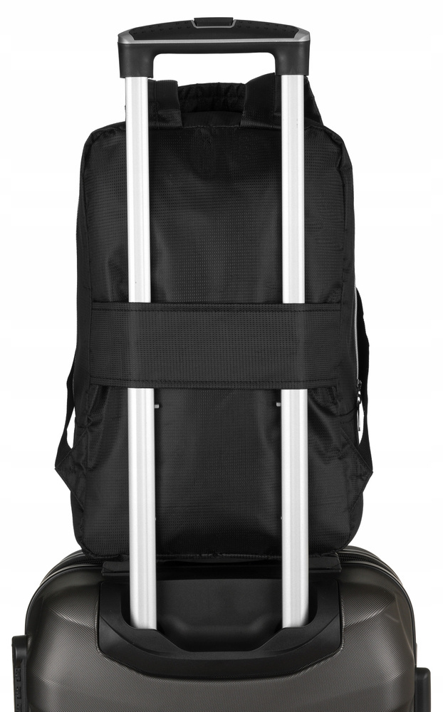 Praktyczne rozwiązanie, które uczyni każdą podróż o wiele przyjemniejszą. Na tylnej ścianie plecaka znajduje się uchwyt, który zaczepisz o walizkę.