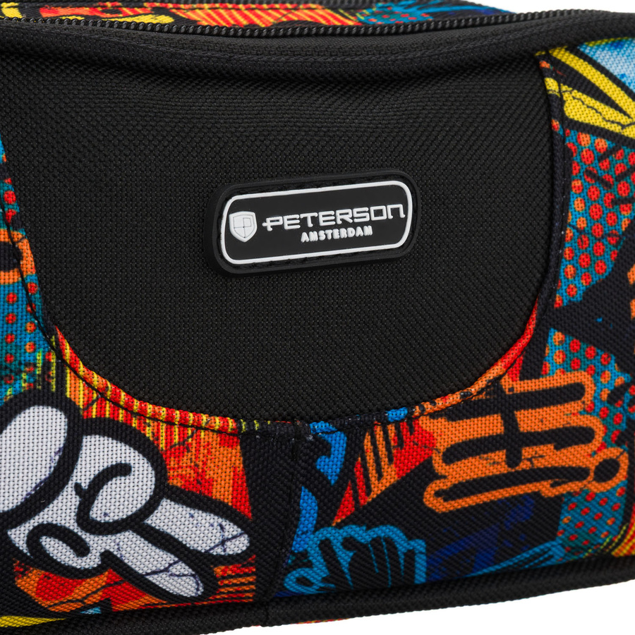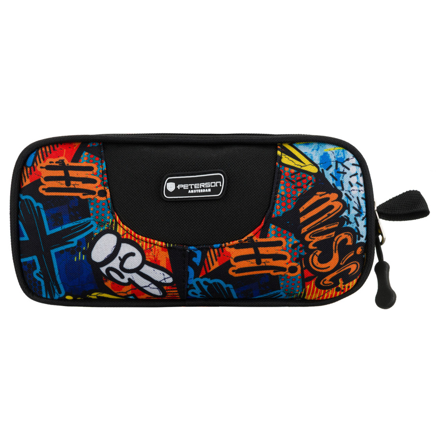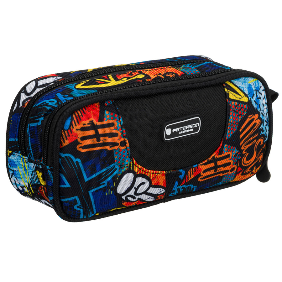 Pojemny piórnik szkolny z poliestru ze wzorem imitującym graffiti, zapinany suwakami – Peterson
