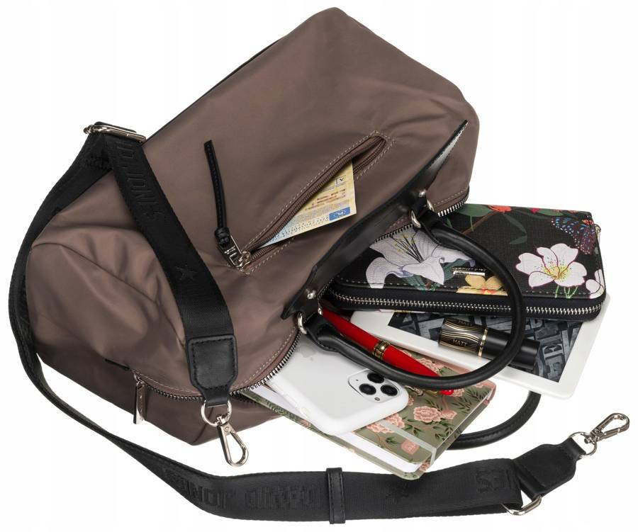 • Niezwykle poręczny i wygodny dodatek | Lekka torebka o niewielkich rozmiarów, niemniej bardzo pakowna. Wyposażona w 2 kieszenie wewnętrzne. Jedna z nich jest otwarta, druga zamykana na suwak;