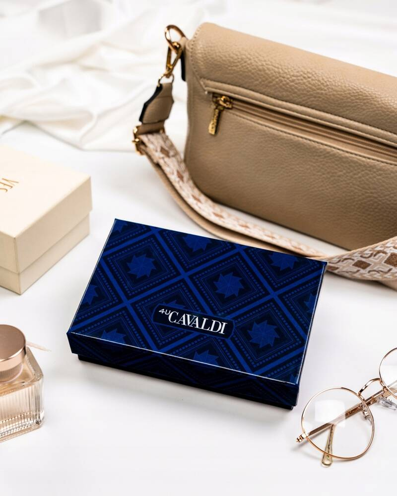 - Pudełko prezentowe, dzięki któremu oszczędzisz czas i pieniądze, jeśli chcesz podarować ten portfel bliskiej osobie.