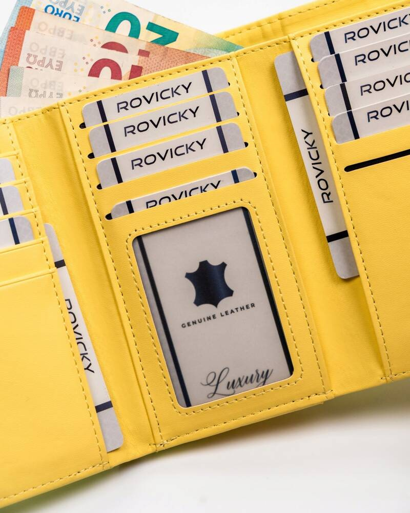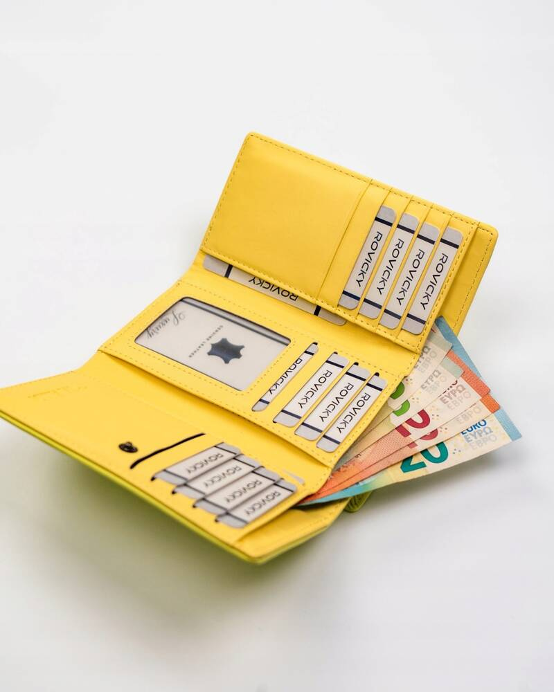 Przegródki na karty i dokumenty zabezpieczono podszewką. Pozwala to uniknąć otarć na skórze, podczas wkładania i wyjmowania kart.