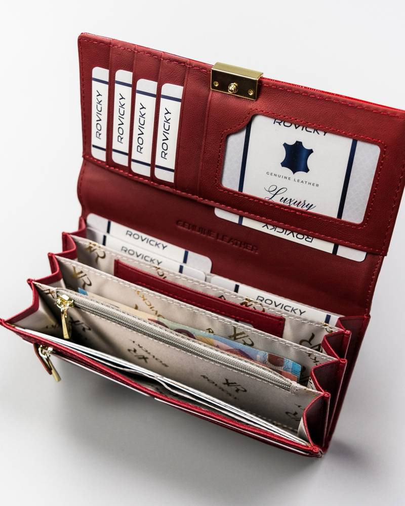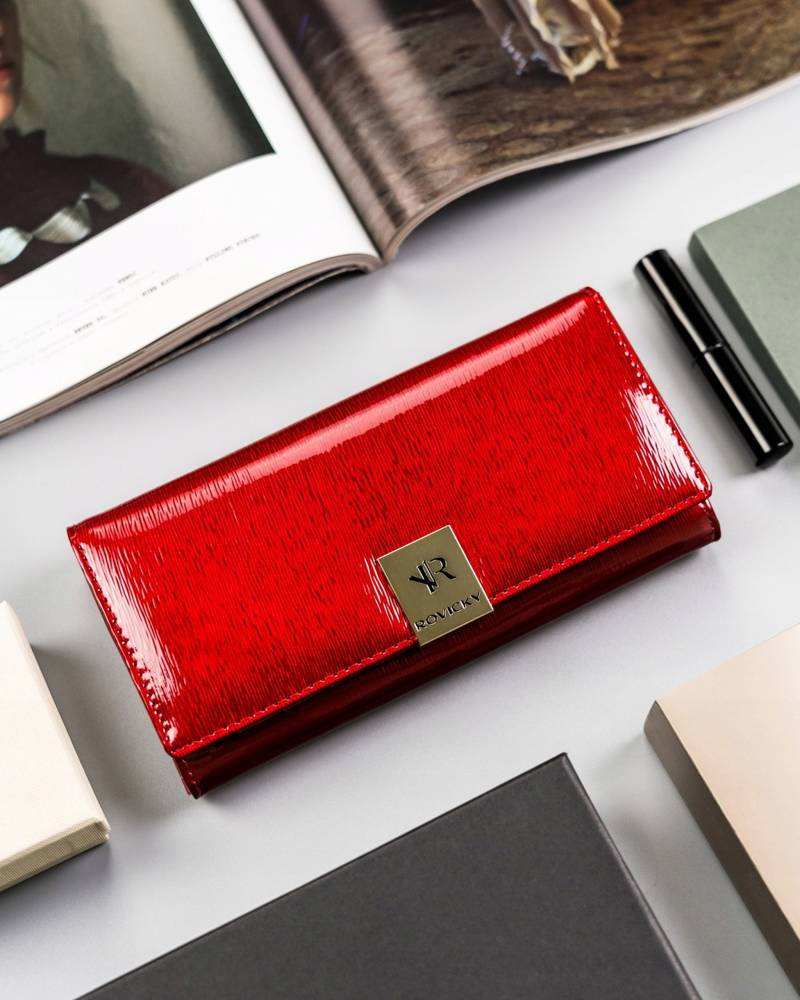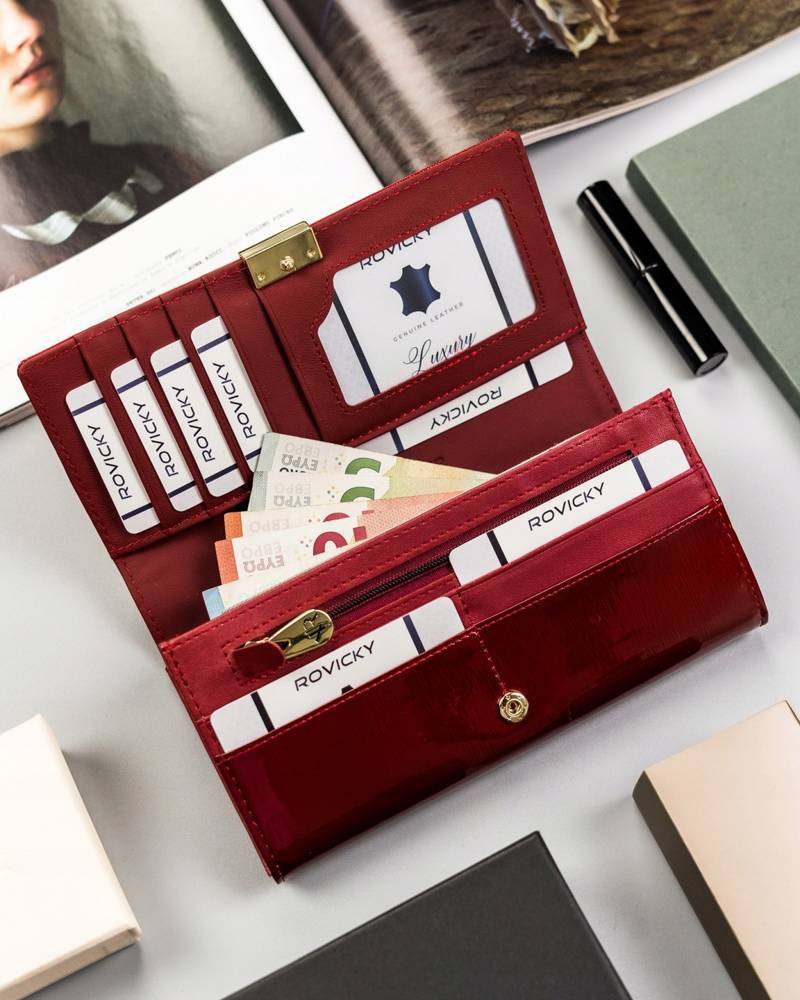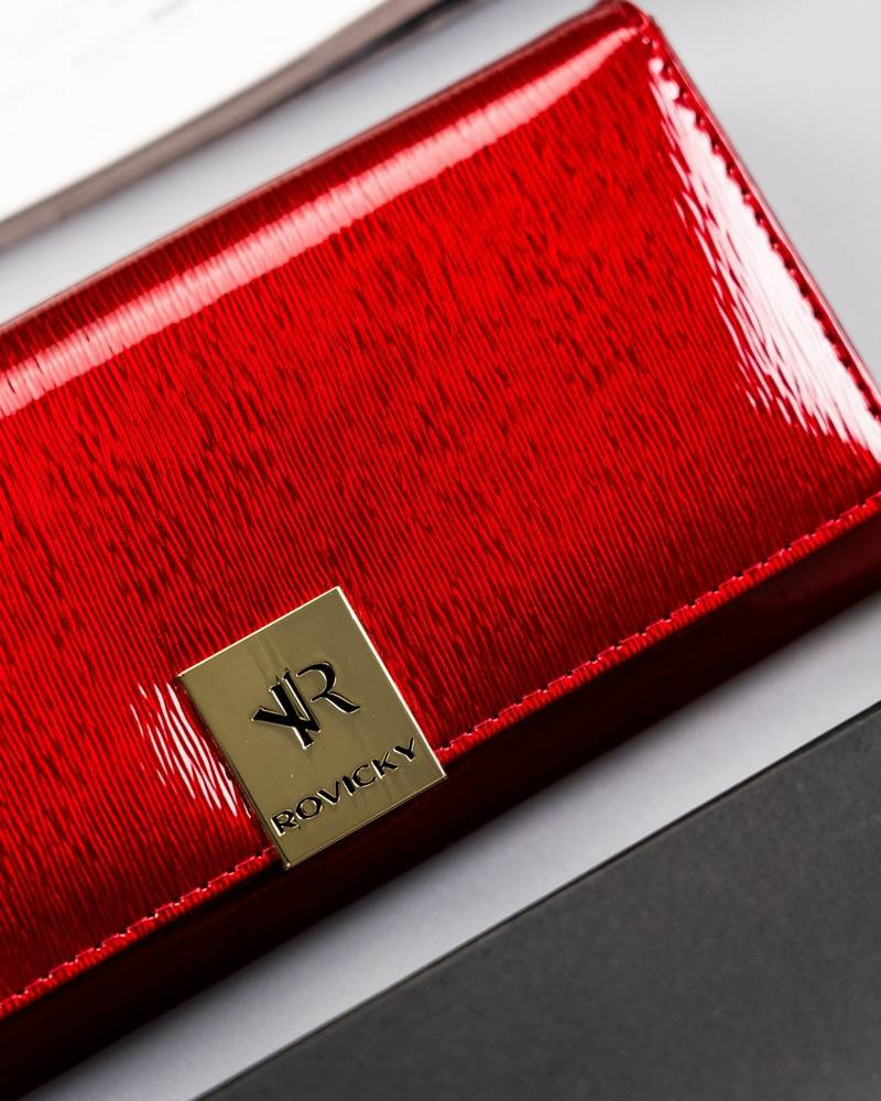 Portfel damski z lakierowanej skóry naturalnej zamykany na zatrzask - Rovicky-1