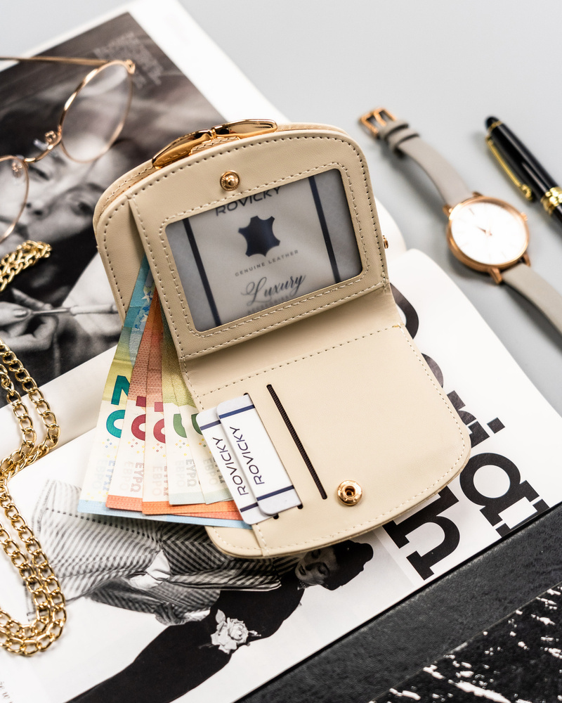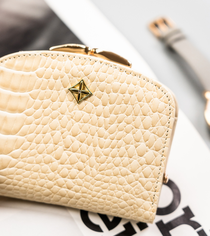 - Mały, funkcjonalny dodatek | Portfel niewielkich rozmiarów, który z powodzeniem przechowasz w kieszeni czy też małych listonoszkach i kopertówkach. Wnętrze pomieści wszystkie najważniejsze karty, dokumenty oraz gotówkę;
