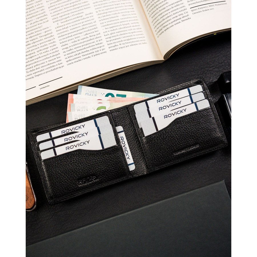 • Portfel wyposażony jest w 2 szerokie przegrody na banknoty, co pozwala wygodnie rozdzielić gotówkę – np. według waluty lub nominałów. Dzięki temu zachowasz porządek i szybciej sięgniesz po odpowiednią kwotę.
