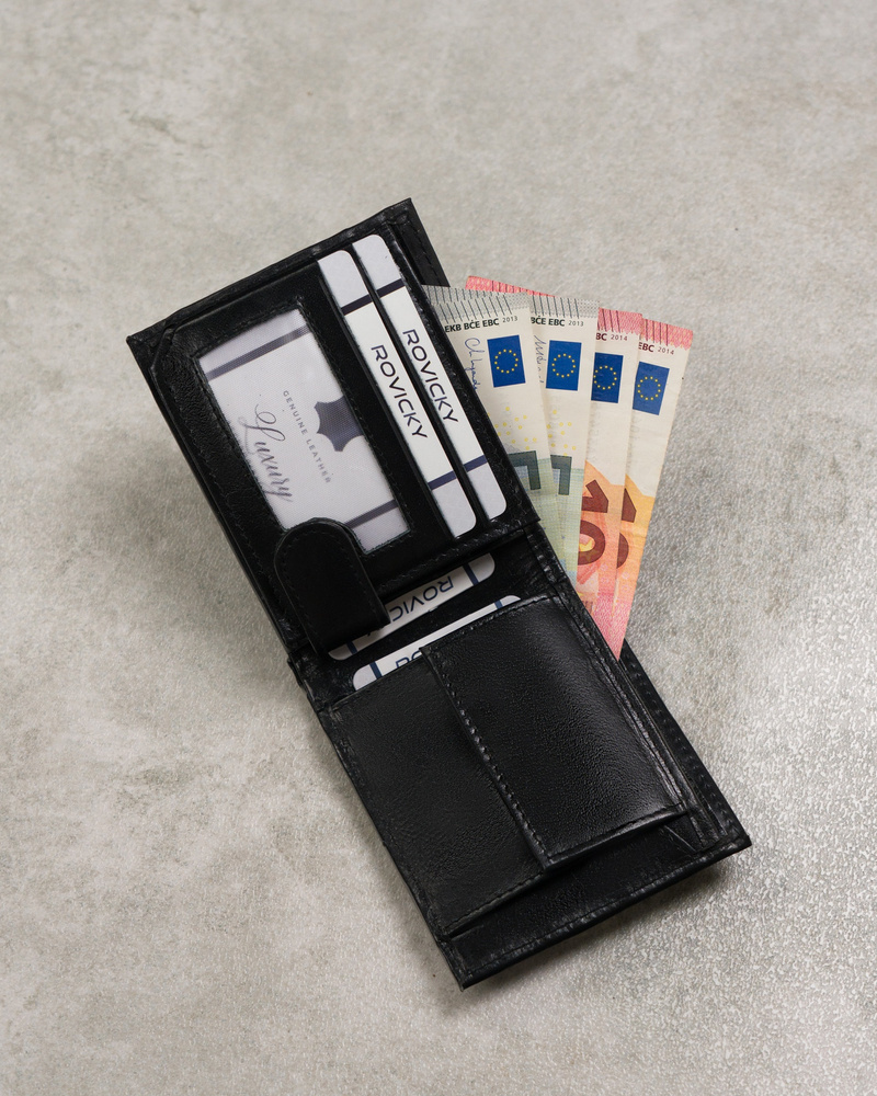 Podwójna kieszeń na banknoty jest przydatna dla Mężczyzny, który korzysta z dwóch walut.