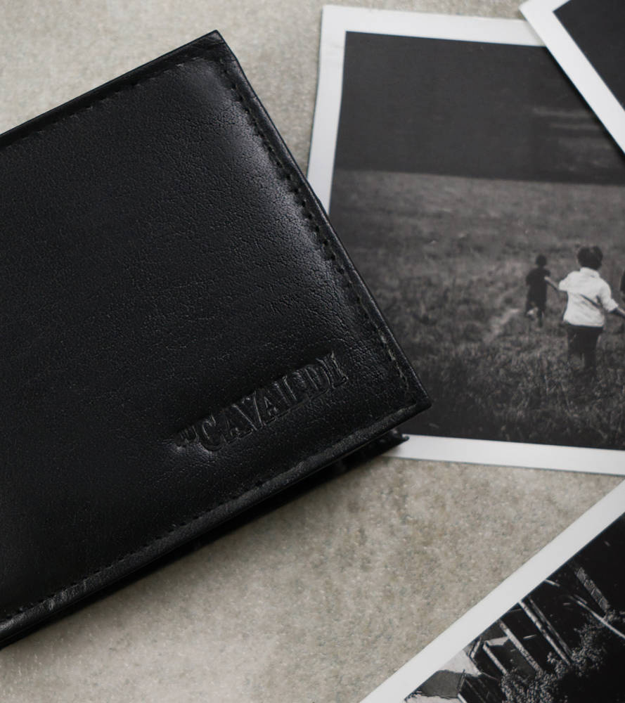 Skórzany portfel męski z kieszonką na rewersie — Cavaldi