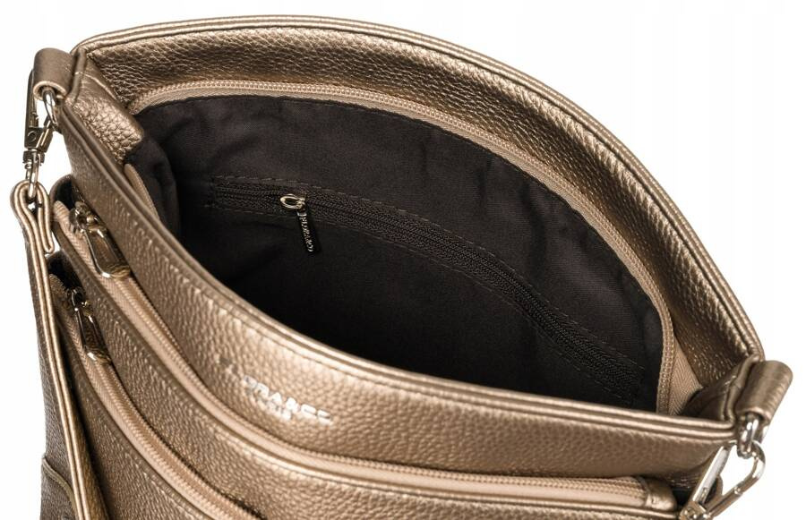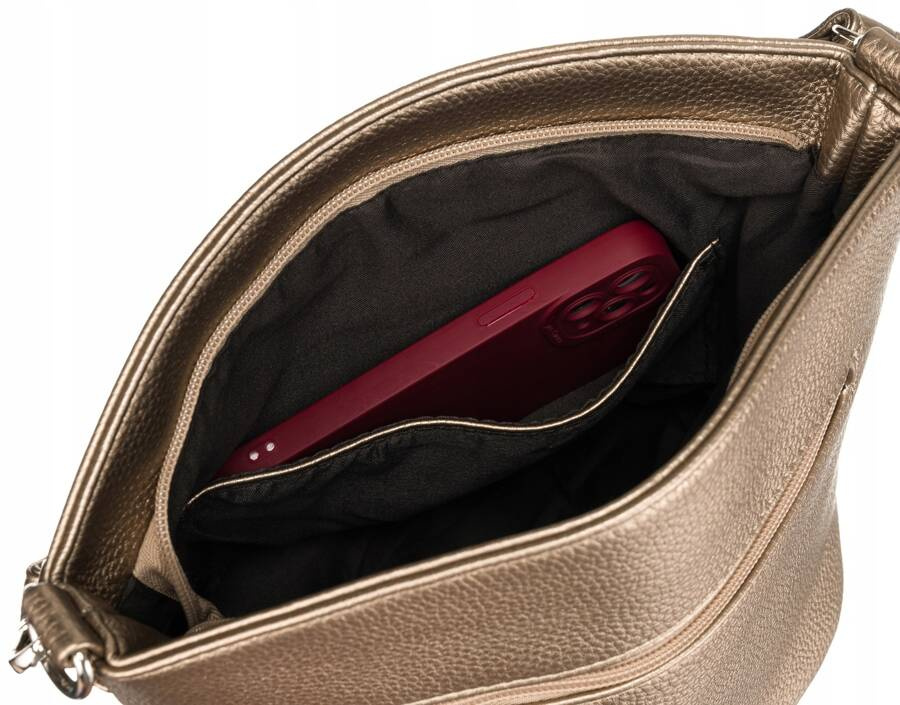 Stylowa torebka posiada 1 pojemną komorą zamykaną na solidny suwak.