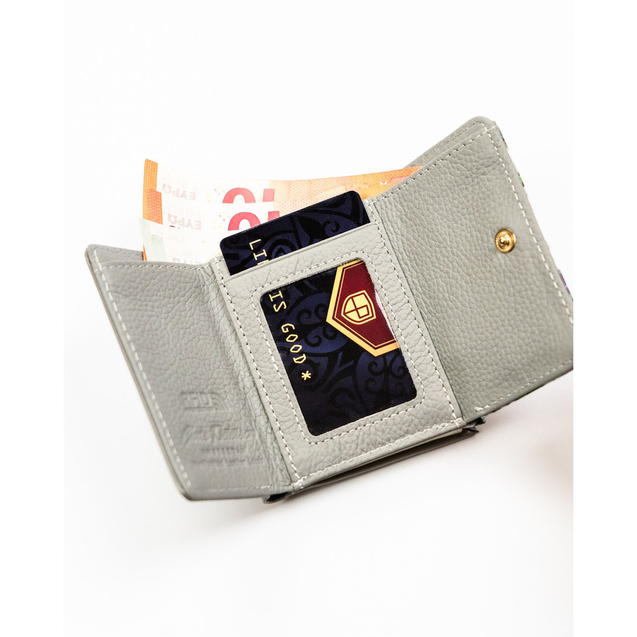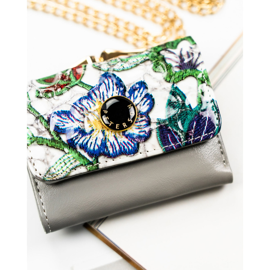 Wielokolorowy portfelik damski ze skóry naturalnej w kwiaty zamykany biglem i zatrzaskiem – Peterson