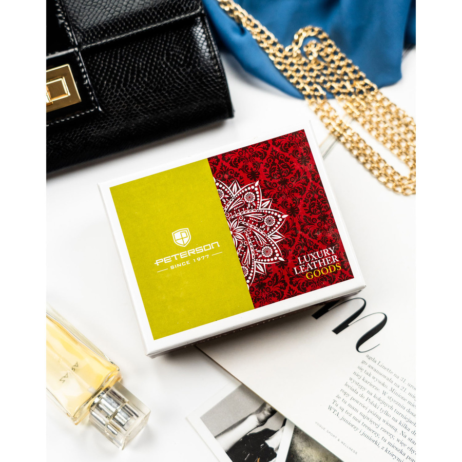 Napisz pierwszą opinię o „Wielokolorowy portfelik damski ze skóry naturalnej w kwiaty zamykany biglem i zatrzaskiem – Peterson”