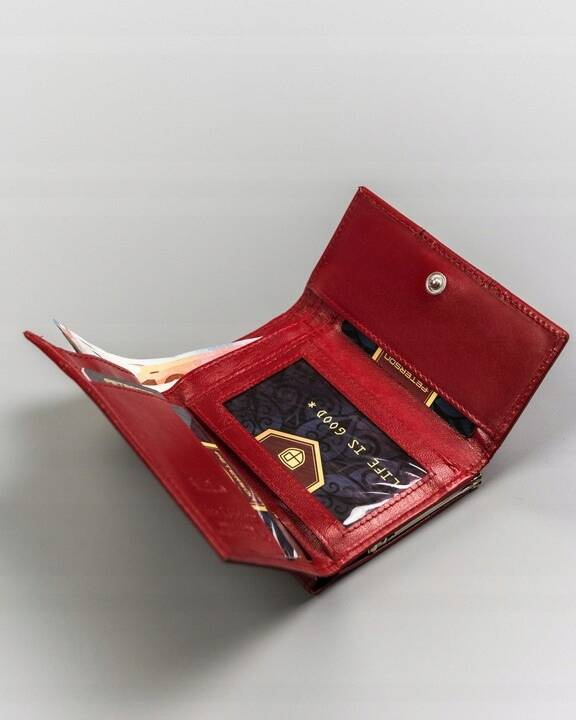 Mimo swoich niewielkich rozmiarów, portfel powieści najpotrzebniejsze drobiazgi. Kieszenie na banknoty i monety są odpowiednio duże, aby pomieścić pokaźne ilości pieniędzy.