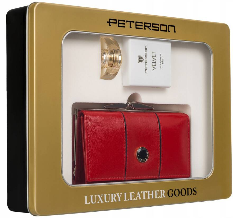 Zestaw prezentowy: skórzany portfel damski i woda perfumowana Velvet — Peterson