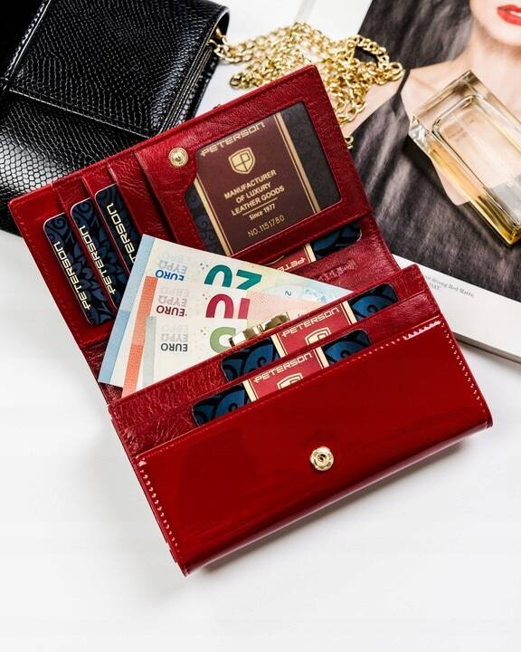 Zestaw prezentowy: skórzany portfel damski na zatrzask i woda perfumowana Velvet — Peterson