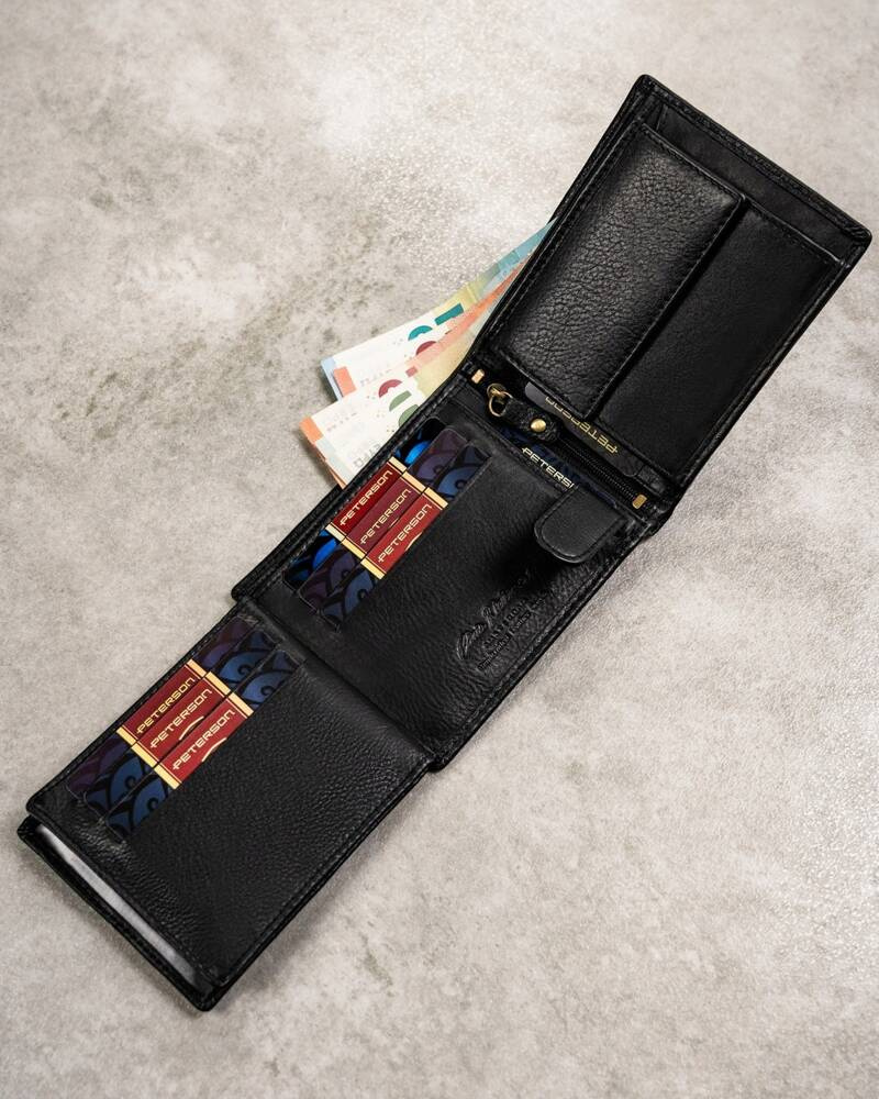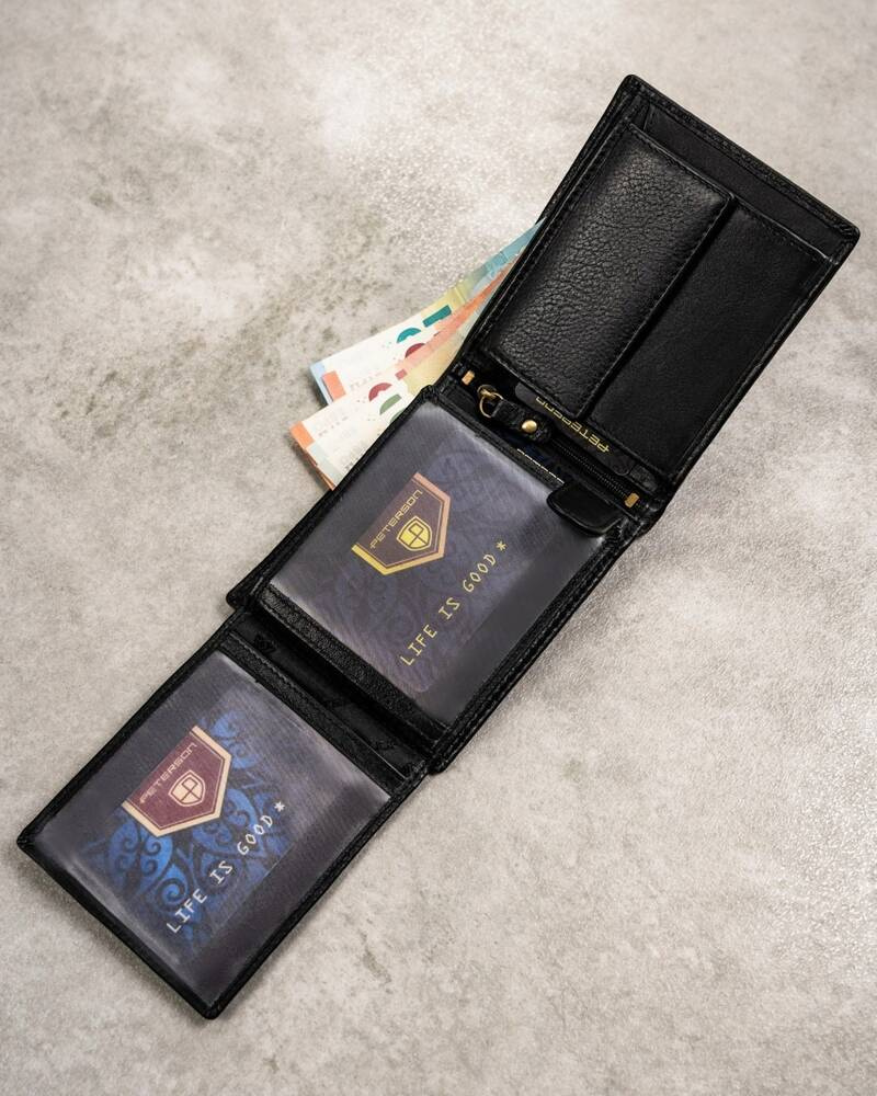 Portfel jest bardzo pojemny również w kwestii Twojej gotówki. Kieszenie na pieniądze, podobnie jak przegródki na karty także wyściełane są odporną na otarcia podszewką.